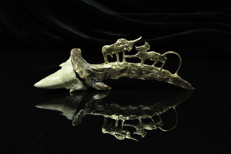 Alfiz Sabirov (Perm). Unicorn vs Lion battle. Bronze, molding,shark tooth. 7x20x3,5.2014