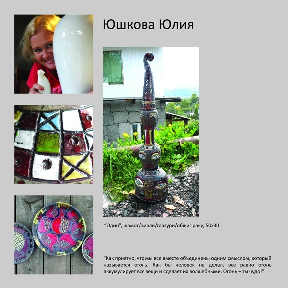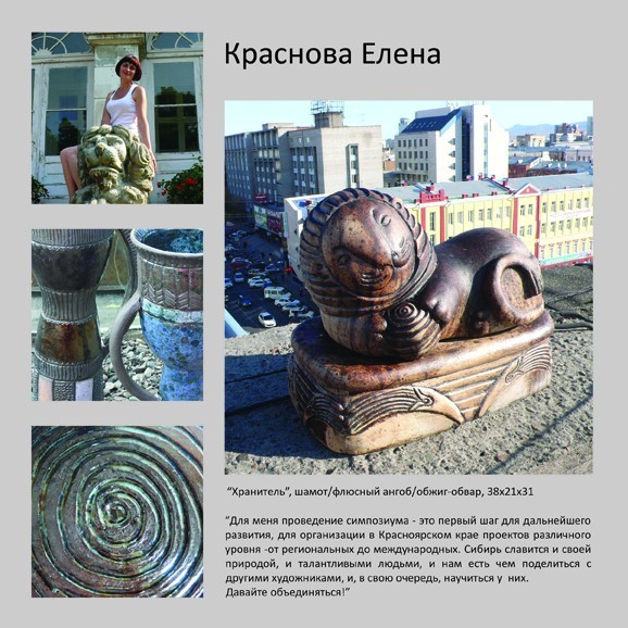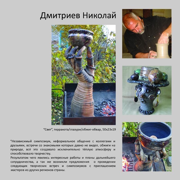 Выставочный проект первого в Сибири керамического симпозиума по газовому обжигу «Дар огня»В Красноярске сильная школа керамики, ей уже больше тридцати лет. Искусствоведы даже выделяют эту школу как отдельную, с ее точной географической привязкой (заметьте — красноярская школа, не общесибирская
