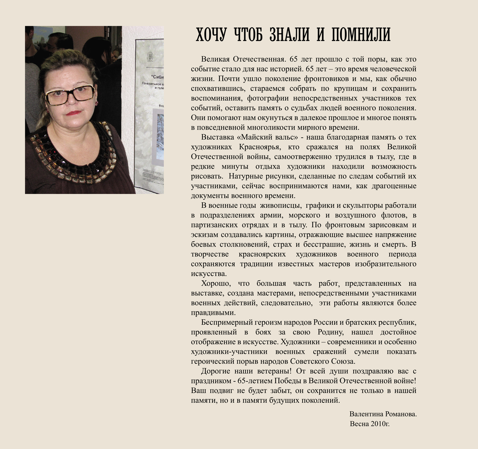 Великая отечественная война. Родилось и выросло уже поколение, как это событие стало для нас историей. Художественная галерея Романовых представляет вниманию своих зрителей  Проект Майский Вальс.